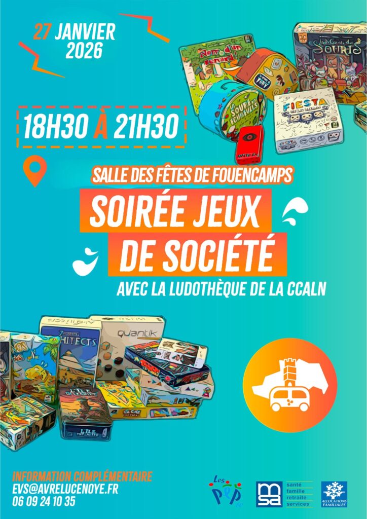 Soiré Jeux de société le 27 Janvier par mairiefouencamps · Publié 13 janvier 2026 · Mis à jour 13 janvier 2026